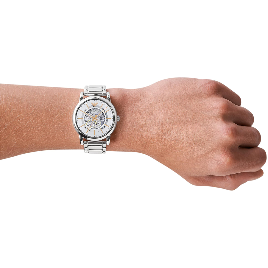 برند امپریو آرمانی برندی امریکایی ست که توسط کمپانی فسیل گروپ (سومین کمپانی ساعت سازی مطرح دنیا) ساخته می شود. موتور این ساعت توسط کمپانی میوتای ژاپن (بزرگترین کمپانی موتورساعت سازی دنیا) ساخته شده و از نوع کوارتز (اتوماتیک) است. این ساعت در ابعاد قطر قاب 43 میلیمتر ضخامت قاب 13 میلیمتر عرض بند 22 میلیمتر طراحی شده است. جنس بند و بدنه این ساعت از استیل ضد حساسیت با کیفیت (318 میکرون) می باشد و برای افرادی که ساعت سایز درشت میپسندند مناسب است. مقاومت این ساعت در برابر آب5اتمسفر می باشد. این ساعت توسط مرکز گارانتی و دپارتمان تخصصی تعمیرات ساعت آچارواچ داری 5 سال گارانتی معتبر می باشد. |